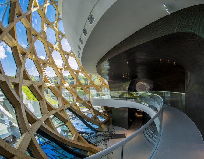 Même si la charpente a été réalisée par l’entreprise allemande Hess Timber, le nouvel auditorium de la Seine Musicale est une merveille de la construction bois en France. © CD92-Jean-Luc Dolmaire