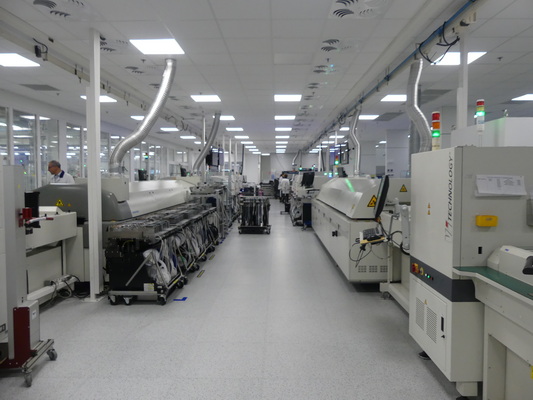 Une ligne de cartes, il y en a trois dans l’unité électroniques, pose 90 000 composants par heure et fabrique une carte finie toutes les trois secondes. © PP