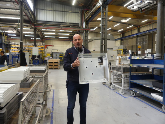 La fabrication des radiateurs électriques commence par le travail de la tôle pour former leurs faces avant, latérale et arrière. © PP