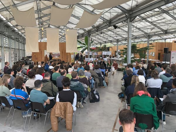 Pour la première fois, les Rencontres ont eu lieu en région parisienne, alors que les premières éditions affichaient un penchant rural que la progression de la fréquentation ne permet pas de satisfaire ni de générer. Avec une édition lorraine d’octobre 2024 réussie dans la métropole de Nancy avec 450 participants et de très nombreux parcours de visite, Paris promettait un nouveau record, si ce n’est que la jauge de la Serre Wangari est fixée à 500. D’ailleurs, la journée du samedi, cœur des Rencontres, a dû monter des barnums pour loger ses nombreux ateliers parallèles. Un risque météorologique assumé comme pour les nombreux parcours de visite à pied le vendredi 26, ou à vélo le dimanche 28 après la clôture, sous l’égide du Forum International Bois Construction.