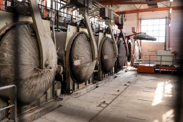 Chaque autoclave contient six wagons de blocs (soit le contenu de 20 moules) qui vont cuire durant 7 heures à environ 190 °C sous une pression de 12 Bar. © EJH