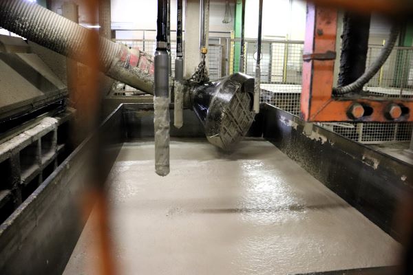Les chutes de production, blocs non conformes, débris, eaux chargées, etc., sont récupérés et réintégrés dans le process. Les eaux traitées en circuit fermé sont réutilisées également. © EJH