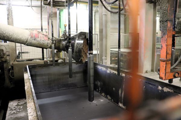 Appelée dans le malaxeur, la pâte sable broyé-eau est mélangée avec du ciment, de la chaux, de l’alumine (et un peu de poudre de Perlinpinpin). Ces ingrédients sont dosés précisément pour provoquer la réaction de gonflement du mélange.