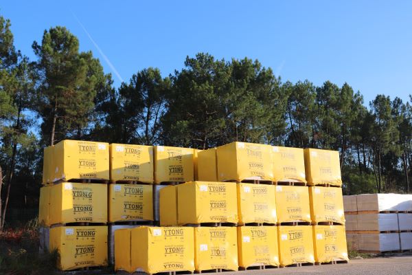 Quelques produits fabriqués à Mios : Ytong pour le gros œuvre et Siporex pour l’aménagement intérieur ou extérieur. © EJH