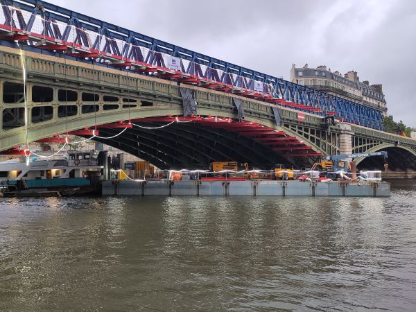 Réparation du pont de Sully (Paris) pendant les Jeux Olympiques suite à un accident avec une péniche. © Infraneo