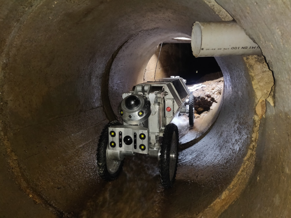 Un robot de la gamme CurioCity est spécialement conçue par l’équipe R&D d’Infraneo pour inspecter et ausculter les ouvrages souterrains semi-visitables. © Ad Signum