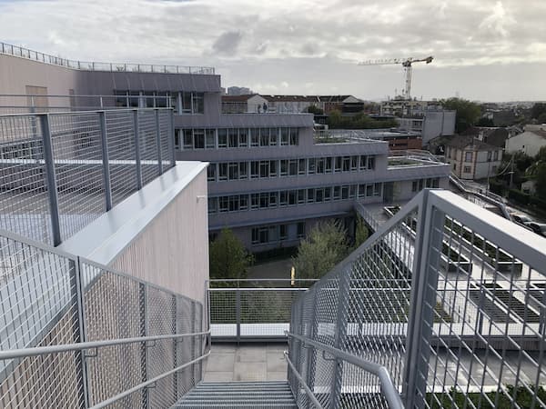 La cour est oasis, ce qui devient la règle, et le bâtiment en zone inondable (près de la Seine) est conçu pour piéger l’eau dans des réservoirs. Les vieux des groupements MPGP ne sont pas des vieux, Tectoniques se réinvente, Maître Cube réussit le pari fou engagé il y a dix ans. Méha et CPL collaborent pour le bois, Pyrénées Charpente soude les ailettes d’une poutrelle destinée à limiter les retombées dans l’un des réfectoires. Alors que toutes les EG et les grands maçons se dotent les uns après les autres d’entités bois, la charpente indépendante fait mieux que résister avec l’association des leaders locaux sous Maître Cube.