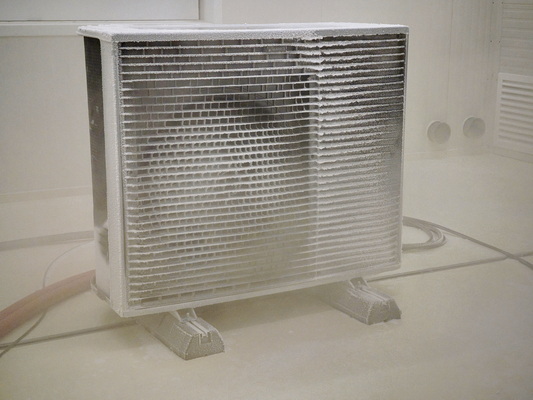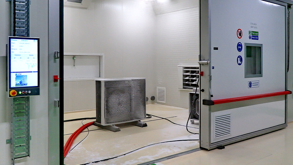 Voici l’une des chambres de tests climatiques en train de torturer une pompe à chaleur air/eau Daikin Altherma : HR 95 % et température de - 37,4 °C. Les diverses chambres de tests climatiques sont conçues pour des températures ambiantes allant de - 30 à + 60 °C, avec une humidité relative de 95 %. L’une d’entre-elles sait descendre jusqu’à - 40 °C et une autre monter jusqu’à + 68 °C. © PP