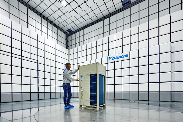 Voici ce que Daikin envisageait à l’origine : seulement un laboratoire de test de compatibilité électromagnétique. Deux ont été aménagés au rez-de-chaussée du nouveau bâtiment de laboratoire de six niveaux, soit 11 000 m2 au total. © Daikin / © PP