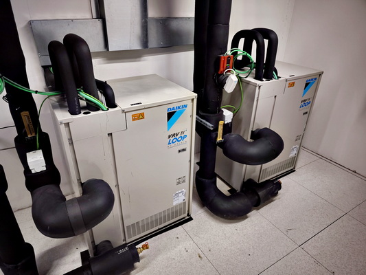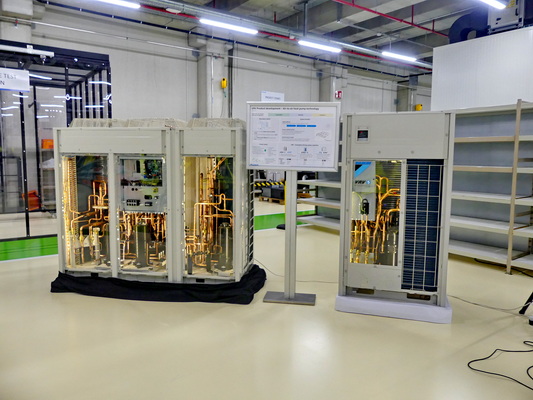 Outre ces VRV à condensation par eau, le chauffage et le refroidissement des salles de tests sont également assurés par six centrales Tewis et un chiller Daikin Hubbard. L’espagnol Tewis Smart Systems S.L. a été acquis par Daikin en 2018, à travers sa filiale italienne Zanotti S.p.A., notamment pour ses systèmes au R744. L’anglais Hubbard Refrigeration a été acquis par Zanotti en 2007.
