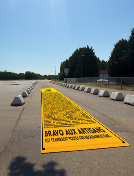 Avec sa campagne, Tout Faire propose pour la première fois une campagne qui mettant en lumière la réalité normative des artisans. Pour illustrer la lourdeur de la charge qui pèse sur les professionnels, "Tout Faire a fait le choix rupturiste d’un pavé de texte dense et austère, à l’image des textes réglementaires souvent peu engageants". Concrètement, le dispositif prend vie tout au long du parcours des visiteurs pour se rendre au salon Artibat :