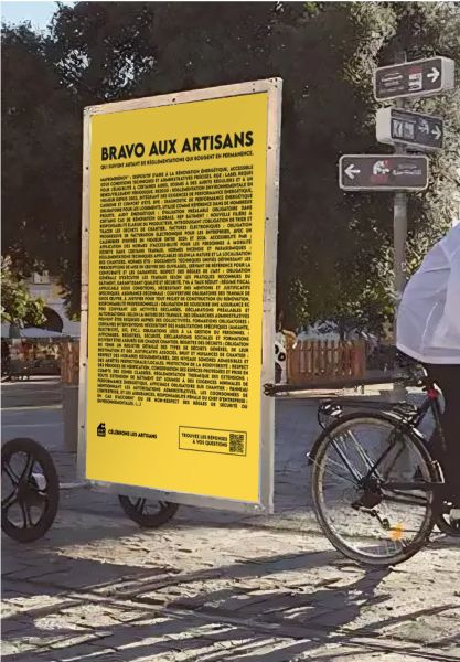 Sur tous les supports de communication, un QR code redirige vers une page web dédiée et invite les artisans à s’exprimer librement sur ce qui les pèse au quotidien. © Tout Faire