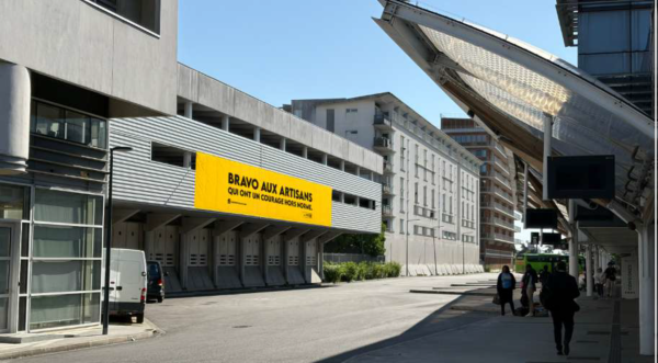 – dès la gare de Rennes : une bâche grand format, un camion, des triporteurs et une distribution de flyers pour accueillir les artisans à cet endroit stratégique ;