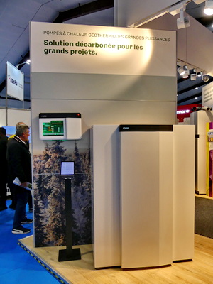 Premier constat, il devient difficile de trouver une chaudière gaz, on voit avant tout des pompes à chaleur et des chauidères bois. Avec les récentes évolutions de MaPrimeRenov', les fabricants de chaudières bois font grise mine. Mais ceux qui se concentrent sur les pompes à chaleur sont nettement plus optimistes. Seconde impression, la géothermie est beaucoup plus présente à Artibat que dans les autres salons professionnels consacrés au Génie Climatique. Cela tient d’abord au fait que plusieurs petits industriels français de la pac géothermique sont installés dans l’Ouest.