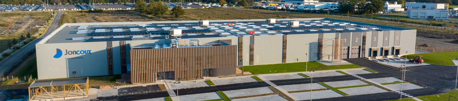 En avril 2024, Joncoux posait la première pierre de son troisième site de production. Ce projet industriel phare intégré au Pôle d'Excellence Industrielle de la Janais à Chartres-de-Bretagne est aujourd'hui opérationnel. Le site de 8000 m2 accueille 74 collaborateurs ainsi que les activités de production et de peinture. Sa construction et son fonctionnement sont pensés dans une logique bas carbone : des matériaux biosourcés (ossature bois) à la toiture équipée de panneaux photovoltaïques qui assurent 34% des besoins en électricité en passant par les espaces extérieurs végétalisés. Les eaux pluviales sont récupérées et des pavés drainants sont aménagés. Une chaudière biomasse et un système de ventilation double flux signés Joncoux sont installés, garantissant un confort thermique et une qualité d'air optimale.