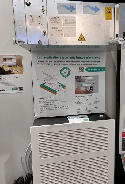 La climatisation rayonnante est basée sur un système de tubes PER intégrés au sol et/ou au plafond permettant de réduire la température ambiante de la pièce en faisant circuler de l’eau à basse température. En combinant ce système avec un déshumidificateur, cela permet de réduire le taux d'humidité ambiant et ainsi de pouvoir augmenter les performances de la surface rayonnante. La température de l'eau qui circule à l'intérieur du système pourra ainsi être abaissée sans risque de condensation.