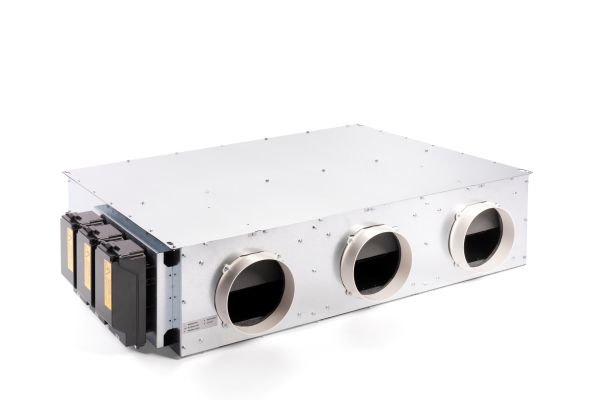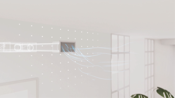 Au commencement, l’air ambiant est aspiré et purifié via un filtre intégré. Ensuite, il est refroidi par un échangeur thermique à eau. Enfin, l’air traité est redistribué dans les pièces via un ventilateur modulé, qui s’adapte automatiquement aux besoins.