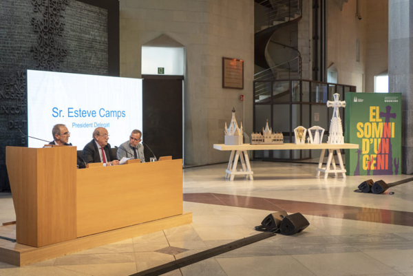 Conférence de presse à la Sagrada Família le 18 septembre 2025, avec à droite l'architecte en chef, Jordi Faulí. La basilique est tout autant un symbole religieux qu'une icône du patrimoine artistique de Barcelone. © Sagrada Família