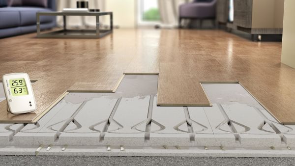 La chape sèche permet d'intégrer un chauffage par le sol et offre une bonne isolation phonique. Elle accepte carrelages, parquets et revêtements souples. © Fermacell
