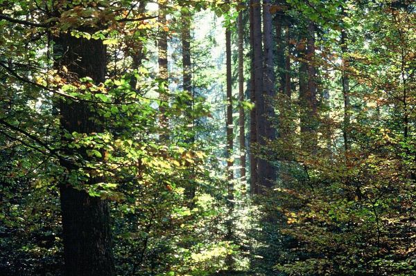 Futaie feuillue vue de l’intérieur au début de l’automne dans la froêt bourguignonne. © Jean Pierre Chasseau / ONF