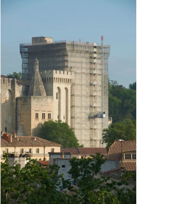 Bâtie en 1342 par l’architecte Jean de Louvres, la Tour du Trouillas est une véritable vitrine des techniques de construction de l’époque. Mais le temps, la pollution et les restaurations malhabiles conduisent à sa détérioration. En 2009, la ville d’Avignon avait donc décidé de la restaurer. Après plusieurs tests et analyses de chaux naturelles hydrauliques, l’entreprise SELE, choisie par la municipalité pour la restauration du palais, avait sélectionné la chaux blanche Nathural. © Lafarge
