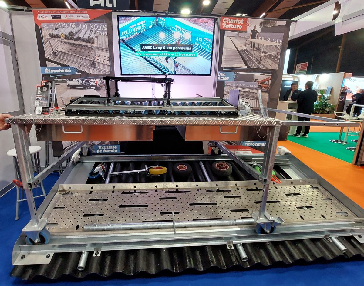 Après avoir travaillé toute sa vie sur les toits, Leny Rabet, qui sort récemment d’une opération des deux épaules, est légitime pour parler de pénibilité : "à force d’avoir mal partout à cause de la manipulation des tôles sur des grands bâtiments, j’ai commencé à réfléchir à un système qui permettrait de simplifier les choses. En 2014 j’ai commencé à imaginer ce chariot." Le concept a été breveté en 2022 auprès de l’INPI et le premier prototype, fabriqué dans les Côtes d’Armor, avait été présenté pour la première fois au Salon Artibat, à Rennes, en 2023.