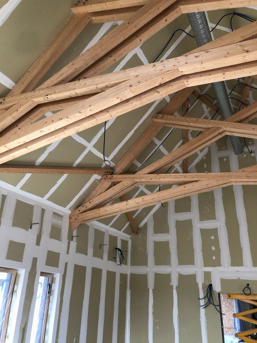 Belles fermes ciseaux imaginées par l'Atelier Desmichelle, tout à fait dans les compétences du charpentier Cogecem. © Jonas Tophoven