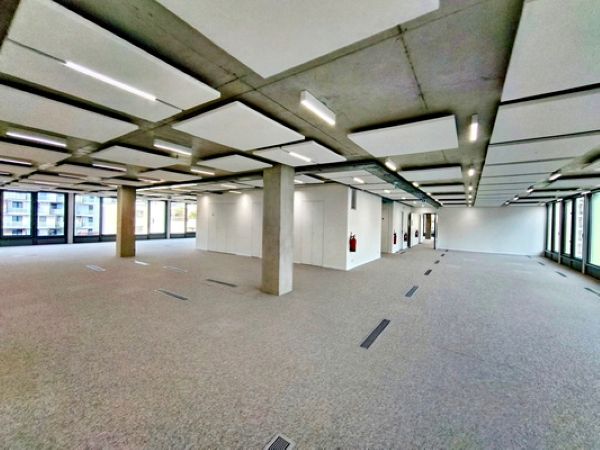 Les concepteurs ont choisi d’aménager des faux-planchers techniques de 70 cm de hauteur à chaque niveau, à l’exception du rez-de-chaussée. Ces faux-planchers contiennent la climatisation, des ventiloconvecteurs quatre tubes, et la ventilation. Du coup, les plafonds sont libres, la sous-face de la dalle béton est apparente, seuls sont suspendus l’éclairage et les panneaux d’amortissement acoustique.