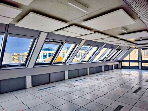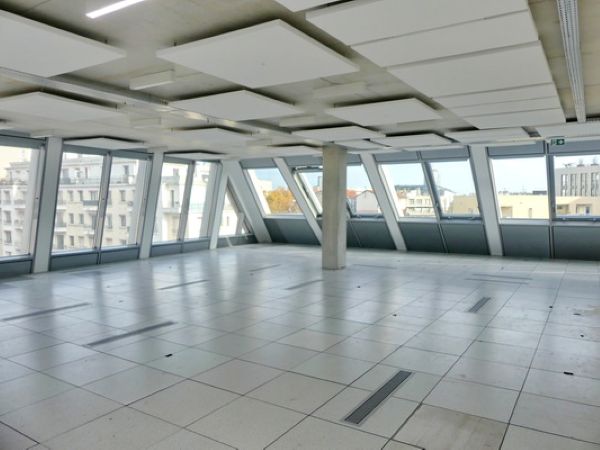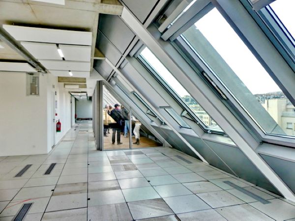 Au R+6, la structure du bâtiment offre une hauteur sous plafond de 4,50 m et une large vue sur Paris. © PP