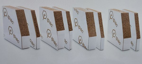 L’IPAC : plaques composées de feuilles de carton alvéolé issu du recyclage et 100 % recyclable pour former une épaisseur allant de 5 à 25 centimètres, recouvertes d’une membrane étanche à l’eau et à l’air. Récompensé par de nombreux prix et labels. © Maison Bois Carton