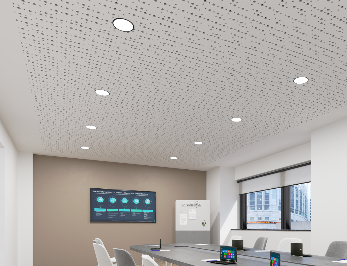 Avec le motif libre Nebula, c’est un halo graphique qui prend forme au plafond. Il fait écho aux mouvements diffus de la lumière dans le ciel pour une ambiance douce et emplie de quiétude. Pensé pour ceux qui cherchent à marier expression artistique et confort acoustique, le motif Nebula transforme chaque espace en un univers suspendu. Son taux de perforation de 13% offre une absorption acoustique (αw) de 0,65 sans laine de verre et de 0,70 avec une laine de verre de 60 mm (plénum de 200 mm).
