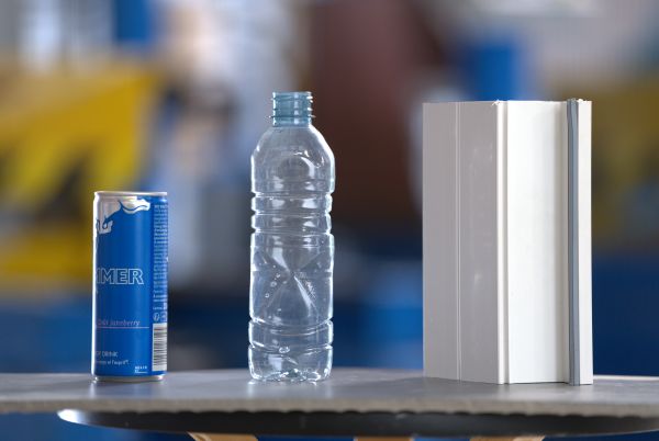 – 2 000 canettes en aluminium, collectées puis fondues et transformées en bobines : l’aluminium recyclé utilisé est issu à 75 à 92 % de déchets (canettes, plaques d’immatriculation, chutes industrielles…) ;