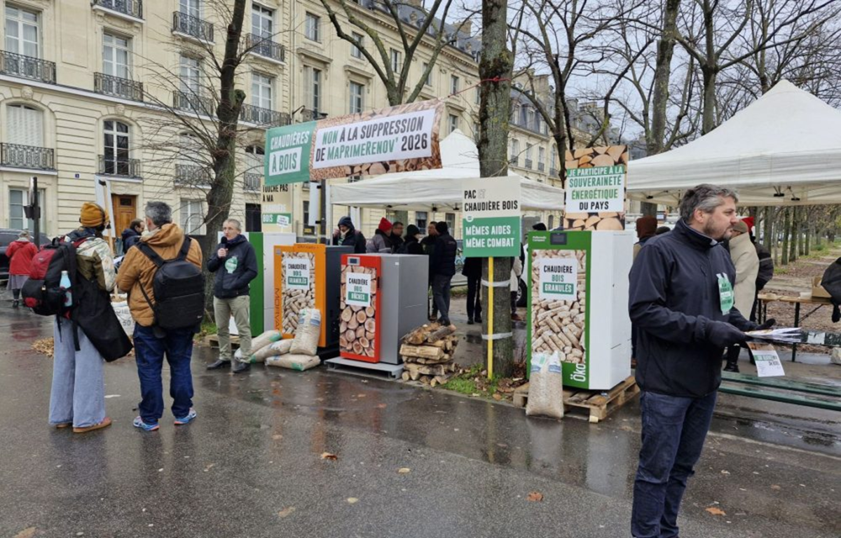 Une soixantaine de professionnels ont manifesté aujourd'hui, jeudi 04 décembre 2025, dans la capitale, pour exiger que les chaudières biomasse (bois et granulés) bénéficient de la principale aide à la rénovation énergétique proposée dans le cadre du dispositif MaPrimeRénov'.