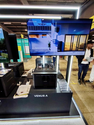 On voit sur le salon, des solutions jusqu’à plusieurs MWh stockés. Starcharge propose un stockage de 5 MWh dans un conteneur maritime de 20 pieds, entièrement équipé. EnexYa met en avant ses batteries de 261 kWh, avec la possibilité de coupler jusqu’à 20 modules, soit une capacité totale de 5220 kWh stockés. Le français Technideal a conçu la série LABEL, des systèmes de stockage d’électricité à refroidissement liquide pour une installation extérieure, dont la batterie RCT POWER CESS 200 de 261 kWh, RCT POWER CESS 1000 jusqu’à 932 kWh