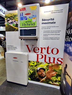 Pour tenir compte des nouveaux usages du photovoltaïque, notamment le chargement/déchargement des stockages d’électricité en batteries alimentés par les panneaux photovoltaïques du site, les industriels, dont Fronius, multiplient les offres d’onduleurs hybrides, capables de gérer le chargement (AC vers DC) des batteries et leur déchargement (DC vers AC). Fronius proposait à EnerGaïa une offre complète : onduleur hybride, stockage Fronius Reserva dont quatre peuvent fonctionner en parallèle avec les onduleurs Fronius GEN24 Plus ou Fronius Verto Plus pour atteindre des stockages importants de 252 kWh. Le tout communicant en Modbus RTU (RS485) ou Modbus TCP. © PP