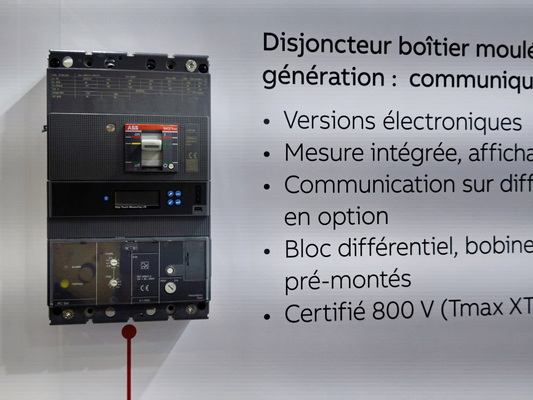 Le disjoncteur Tmax XT5-HVA8 d’ABB est contenu dans un boîtier moulé, conçu pour les applications en tension de service jusqu’à 800 VAC avec un pouvoir de coupure jusqu’à 50 kA. Ils sont destinés à la protection des réseaux AC (Courant Alternatif) et constituent une solution pour les circuits où une seule protection contre surcharges et courts-circuits est nécessaire. © PP