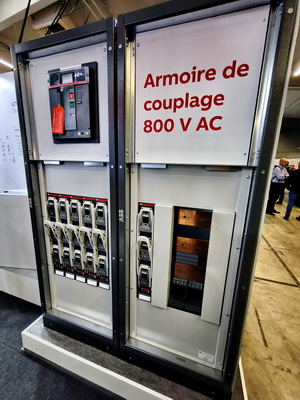 Avec leur montée en puissance, les installations photovoltaïques adoptent de plus en plus des architectures de 800 VAC (tension de 800 Volts en courant continu). L’augmentation de la tension améliore la densité de puissance dans les équipements et réduit le coût des équipements des installations. Du coup, ABB montrait à EnerGaïa des solutions 800 VAC qui divisent par deux le coût des équipements PV des grandes installations grâce à une densité de puissance élevée et des câbles plus compacts.