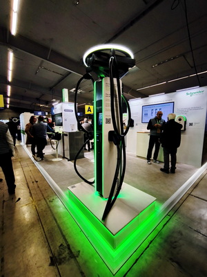 Schneider Electric présentait ses trois nouvelles bornes de recharge de véhicules électrique de 60, 180 et 320 kW, conçus pour les flottes de véhicules électriques commerciaux et industriels. © PP