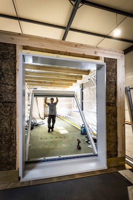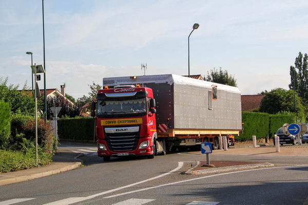 Les modules 3D en ossature bois avec isolation thermique en liège et ouvrants prémontés ont été transportés individuellement par camion à partir du 2 juin 2025 et assemblés au fur et à mesure de leur arrivée. © TH