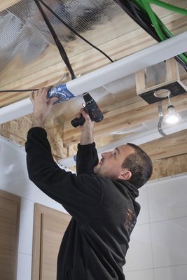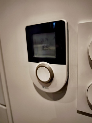 Étant donnée la performance de l’enveloppe, les logements sont équipés de radiateurs électriques Thermor, connectés en io-home control à un thermostat programmable connecté Delta Dore. Les alles de bains sont équipées de sèche-serviettes électriques. © PP