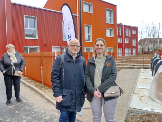 Exovina Renault, directrice du nouveau site de production TH à Fresnoy-le-Grand, où ont été fabriqués les modules 3D pour Arras, et Pascal Oster, directeur commercial régional de TH, ont suivi de très près cette opération et étaient présents à l’inauguration le samedi 17 janvier 2026. © PP