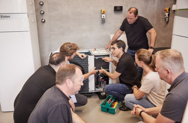 Les parcours spécialisés sur les pompes à chaleur (PAC), destinés aux techniciens et installateurs, préparent aux certifications Manipulation des fluides frigorigènes et QualiPAC. Organisés en quatre modules sur 11 jours, ils atteignent un taux de réussite de 85 % au premier semestre 2025 et figurent parmi les programmes les plus demandés. De nouvelles formations PAC seront lancées au second semestre 2026 afin d'accompagner l’évolution du marché. © Vaillant Group Académie