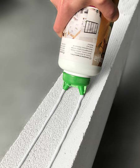 Pour simplifier le montage des carreaux de béton cellulaire, réduire le temps de mise en œuvre d’une cloison, d’un aménagement de salle de bains ou d’une cuisine extérieure, SIPOREX propose la colle vinylique SIPOREX Easyfix. Avec cette colle SI pratique et prête à l’emploi, finies les longues minutes de préparation des mortiers traditionnels, les erreurs de dosage et les salissures.