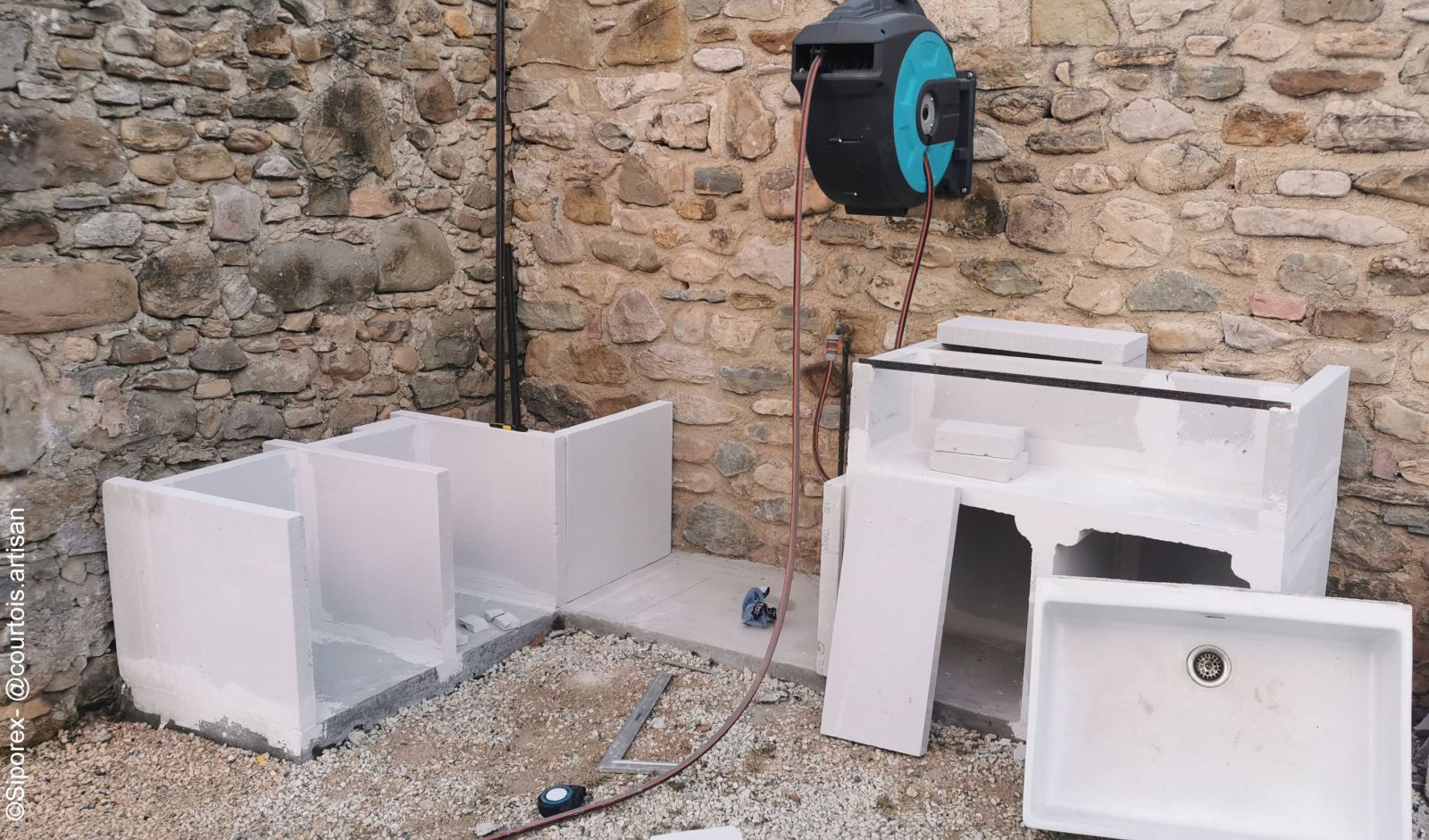 « Je cherchais une solution durable, simple à mettre en oeuvre et esthétique pour construire une cuisine extérieure. Le SIPOREX s’est imposé naturellement : léger, facile à découper, et parfaitement adapté à l’usage en extérieur. J’ai pu donner libre cours à mes idées tout en travaillant un matériau fiable. Le rendu final est à la hauteur de mes attentes, à la fois sobre, robuste et intemporel. » @courtois.artisan