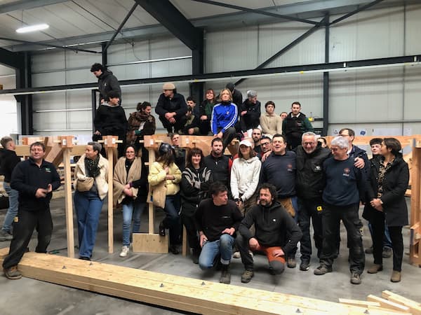 Soixante personnes réunies le 30 janvier 2026 à Saint-Hilaire en Vendée pour le prémontage du Quadrilogue conçu par l'agence Barreau et Charbonnet, temple de la Tribune des Innovations au Forum du Grand Palais. © Jonas Tophoven