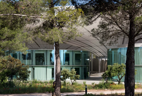 À The Camp, à Aix-en-Provence, la même exigence guide le projet : aucun arbre n’a été abattu pour implanter les volumes cylindriques, glissés au cœur de la pinède sous un vaste toit-parasol protégeant à la fois du soleil et des intempéries. De vastes puits de lumière favorisent la ventilation naturelle et permettent la récupération des eaux pluviales, tandis que la topographie demeure intacte. L’air et l’eau circulent librement entre les bâtiments, pensés comme des modules autonomes simplement posés sur le sol.