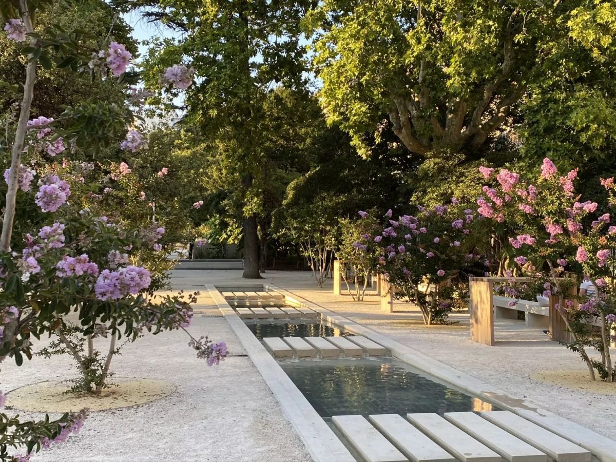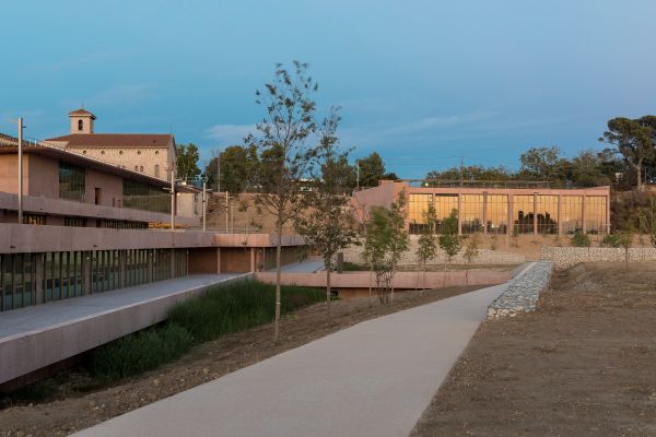 Un canyon paysager a ainsi été réactivé sur le tracé historique du cours d’eau, tandis que des bassins de rétention, aménagés dans les parties basses, prennent en charge les pics de précipitations. Les toitures elles-mêmes, travaillées en restanques pour accompagner la pente du site, participent à cette stratégie d’ensemble : en ralentissant l’écoulement, en permettant un stockage temporaire puis une restitution progressive, elles contribuent à limiter l’érosion des sols tout en inscrivant le bâtiment dans la topographie existante. © David Huguemin