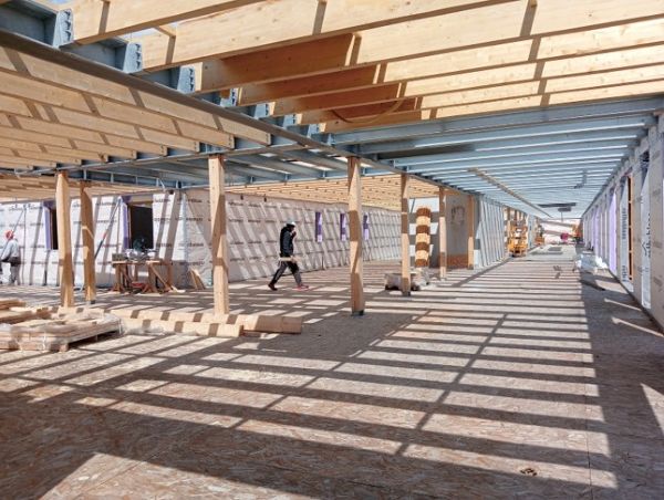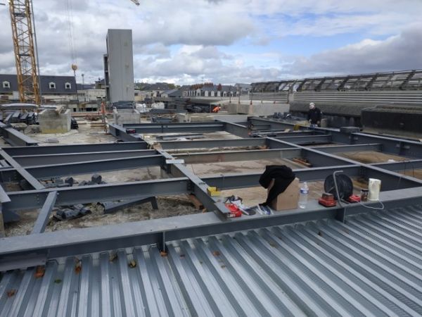 La surélévation en bois a permis de réduire l’empreinte carbone globale, tandis qu’un plancher métallique de répartition en toiture, léger mais performant, a minimisé la charge sur les fondations et assuré la sécurité comme la pérennité de l’ouvrage. © Stéphane Chalmeau