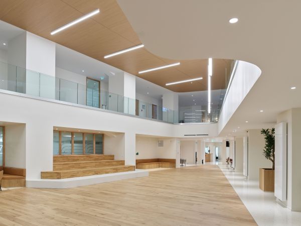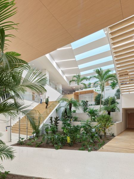 La combinaison d’open spaces, de bureaux plus confidentiels et d’espaces collectifs favorise la transversalité des échanges et une appropriation fluide des lieux de travail. La Rotonde historique, restaurée et ouverte par de nouveaux percements, magnifie la lumière et les perspectives, tandis que des alcôves en bois intégrées dans l’Agora offrent des espaces d’échanges informels, renforçant l’expérience humaine du site.