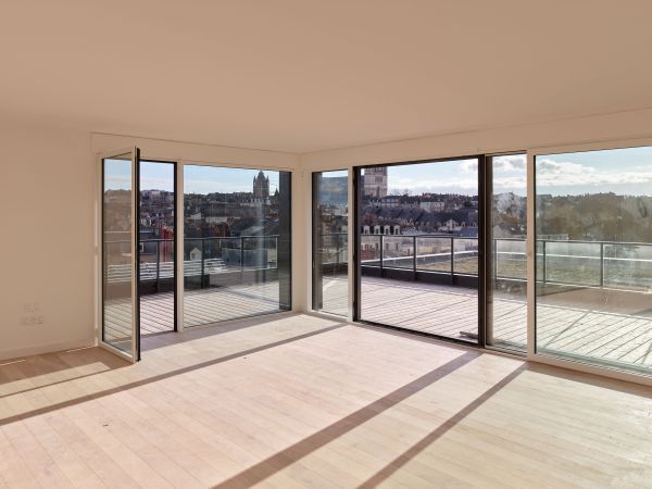 Pensés pour le confort et la qualité de vie, la majorité des logements bénéficient d’une double orientation et s’ouvrent sur des terrasses offrant un rapport privilégié au paysage, avec des perspectives sur la Maine et la cathédrale. © Stéphane Chalmeau